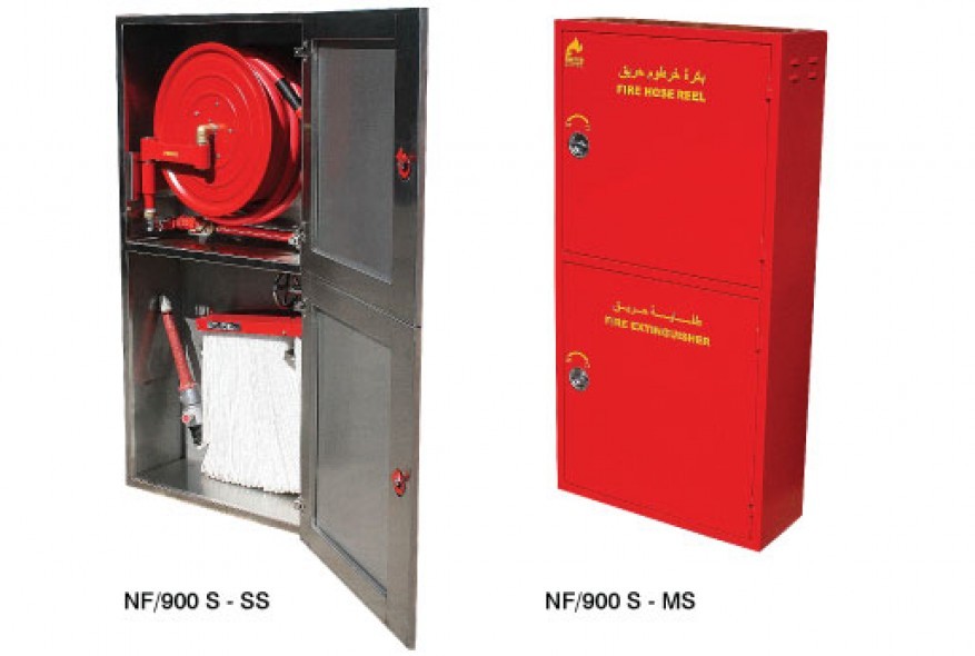 2.5” landing valve + nozzle. - Special hose reel mounting bracket with minimal cabinet depth.
